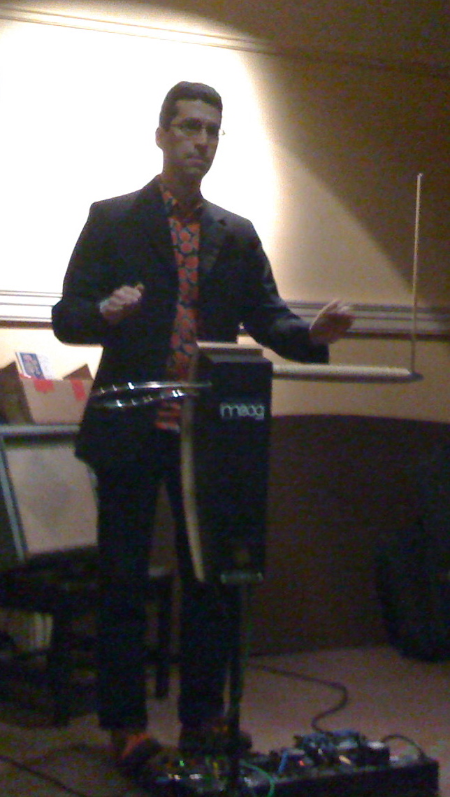 By the way, for those of you who are hungry for more information on all things theremin, drop by Theremin World — you will not be disappointed. Turns out that our Pollard Library performance was just several days away from the 15th anniversary of Lev Termin’s (inventor of the theremin) passing on November 3. What an incredible coincidence…