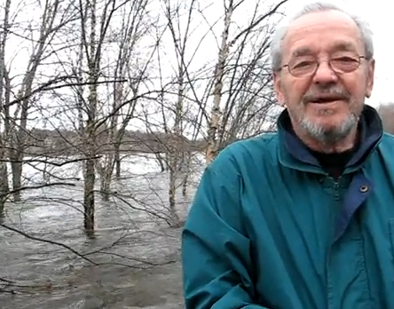 Roger is Lowell’s keeper of Kerouac. I truly don’t think a moment goes by when Roger isn’t channeling Jack, and it’s beautiful to see AND hear. Case in point: just a few months ago, Lowell experienced, for lack of a better description, a Great Flood. The Merrimack River rose to breathtaking heights, and like any person out to see nature at its most powerful, I took a stroll along the drowned banks of the river, digital camera in hand. As I recorded the sights, along came Roger and his lovely wife, walking along, doing just the same. As I got into conversation with him about the floods and the City, I turned my camera on Roger and played the inquisitor. The 3-minute video that follows documents the greatest part of our exchange, and of course, completely unscripted, Mr. Brunelle had a wonderful germane story to share. Can you spot his off-the-cuff Kerouac reference? Notice the gleam in his eye, and the wonder in his voice. He is STILL astounded about Jack, even after all his years of Kerouac submersion.