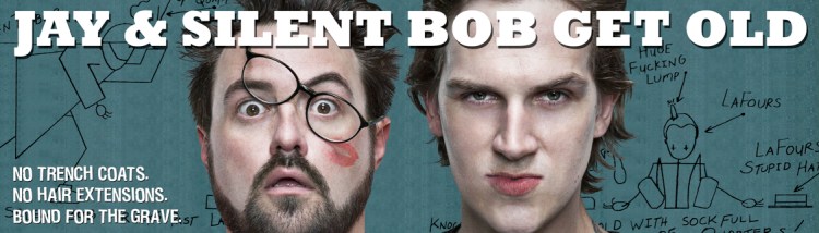 Indie cult film/off-beat comedy duo Jay & Silent Bob (Jason “Jay” Mewes and actor-director Kevin Smith) are partnering with Fathom Events to present Kevin Smith: Live From Behind Featuring Jay and Silent Bob Get Old — this is a one-night only, 3-hour event on Thursday, February 2 with Smith and Mewes hosting their popular podcast (or SModcast as they call it), followed by a live-stream Q&A session with fans. It’s an interactive audience experience due to hit 300 cinemas simultaneously that allows fans to be part of the show by submitting questions to Smith and Mewes via social media.